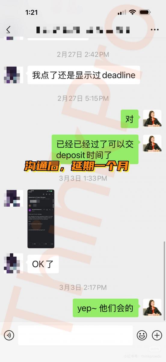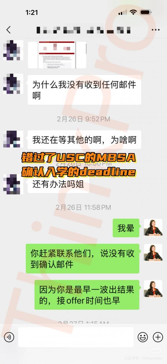 第二个学生,我们早早就帮他拿到了商学院商业分析MSBA录取,但因为还想等等其他学校,一不小心错过了确认入学缴纳定金的截止日期。虽然就错过一天,但网页也关闭了。关键时刻冷静处理,指导学生与学校沟通,最终成功争取到延期一个月!