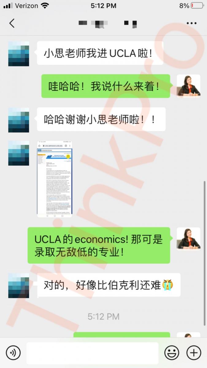 4月28号晚上5点左右,哗啦啦,放榜了!瞬间,ThinkPro的微信号,就被学生们的报喜短信轰炸。一封封带着Bruin Bear,写着“Congratulations! It is our great pleasure to offer you admission to UCLA for the Fall Quarter 2021”的邮件充满了我们的屏幕。紧张,开心,激动,终于等来了一个个好消息。