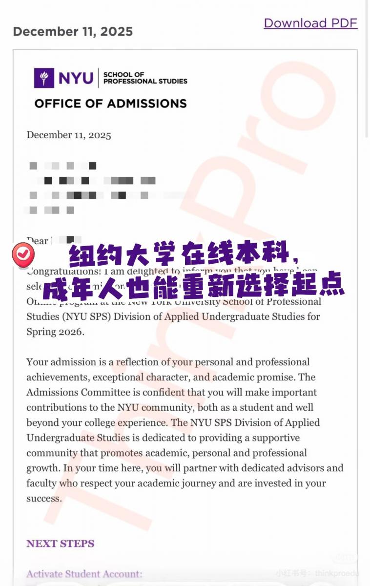 从材料准备(毕竟很多东西是多年前的了),课程选择,文书挖掘,每一步我们都精准规划。毫无悬念,拿下录取!